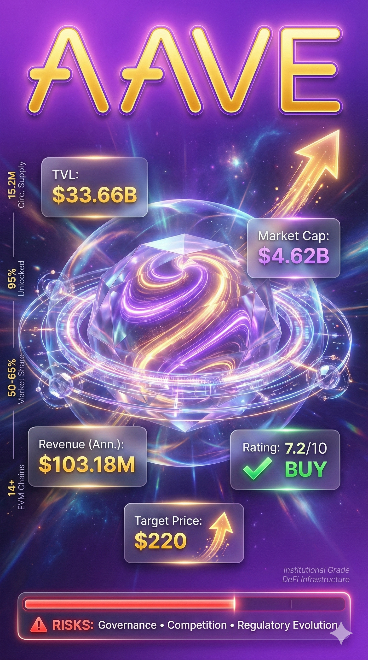 - AAVE 市场份额(65%)及网络效应护城河溢价